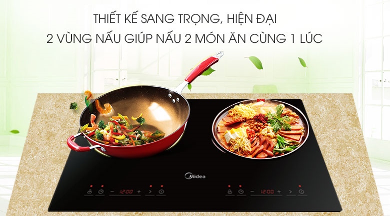 Thích hợp dùng trong căn bếp gia đình, nhà hàng, quán ăn. Có 2 vùng nấu, 1 vùng là bếp từ, 1 vùng là bếp hồng ngoại, cho bạn lựa chọn nấu ăn linh động.