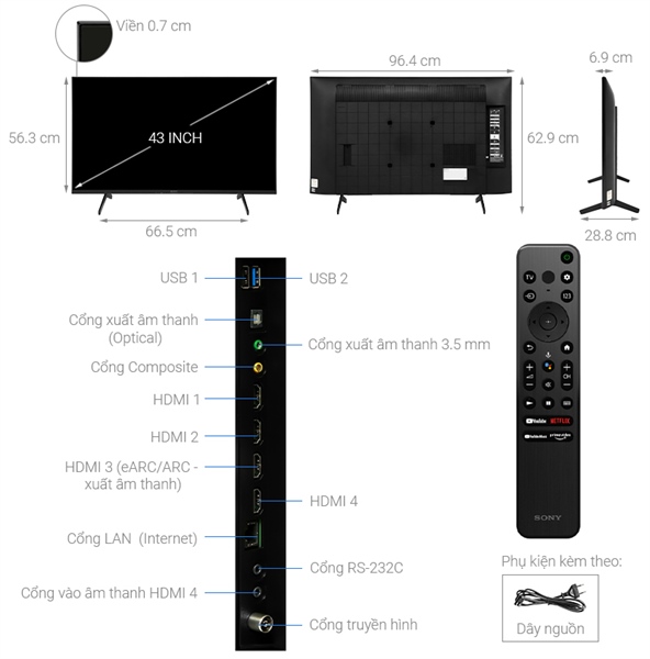 Thông Số Kỹ Thuật Google Tivi Sony 4K 43 inch KD-43X80K