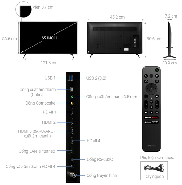 • Cổng nhận hình ảnh, âm thanh: 4 cổng HDMI có 1 cổng HDMI eARC (ARC), 1 cổng Composite