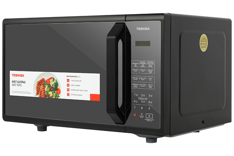 Lò vi sóng Toshiba MM-EM25PE(BM) 25 lít có thiết kế để bàn nhỏ gọn giúp tối ưu không gian bếp, mặt kính tráng gương thời thượng, hoạt động với công suất 800W cùng với những chức năng hiện đại như thực đơn nấu tự động, rã đông theo trọng lượng, nấu nhiều giai đoạn, là sản phẩm xứng đáng để đầu tư cho căn bếp.