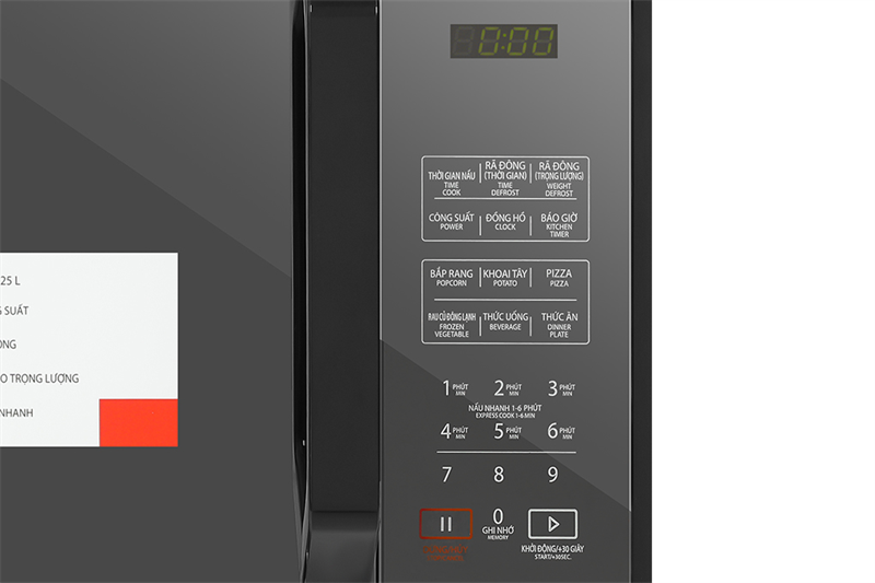 · Tiện ích: | Khóa bảng điều khiển Chuông báo khi nấu xong Hẹn giờ lên tới 99 phút 99 giây 6 thực đơn cài đặt sẵn Ghi nhớ quá trình vi sóng Khoang lò có đèn |