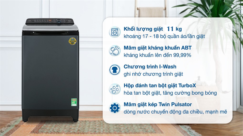 | Chế độ giặt lưu hương thơm, Lồng giặt Pillow, Mâm giặt kháng khuẩn ABT, Mâm giặt kép Twin Pulsator |