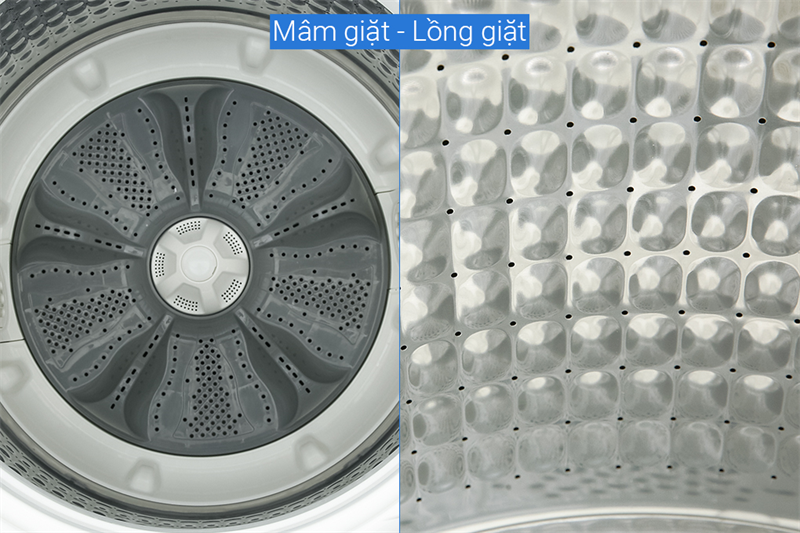 Ngoài ra, mâm giặt còn được phủ chất liệu kháng khuẩn ABT giảm thiểu sự phát triển của vi khuẩn và nấm mốc đến 99.99%, nhờ đó góp phần nâng cao hiệu quả giặt sạch và duy trì độ bền máy tốt hơn.