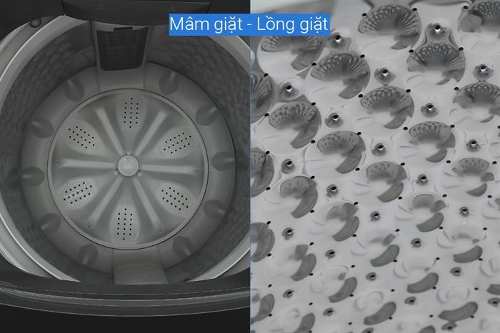 - Lồng máy giặt được làm từ chất liệu thép không gỉ có tính thẩm mỹ cao, chịu được sự bào mòn của các chất tẩy rửa hoá học, hạn chế mảng bám, vi khuẩn tích tụ.