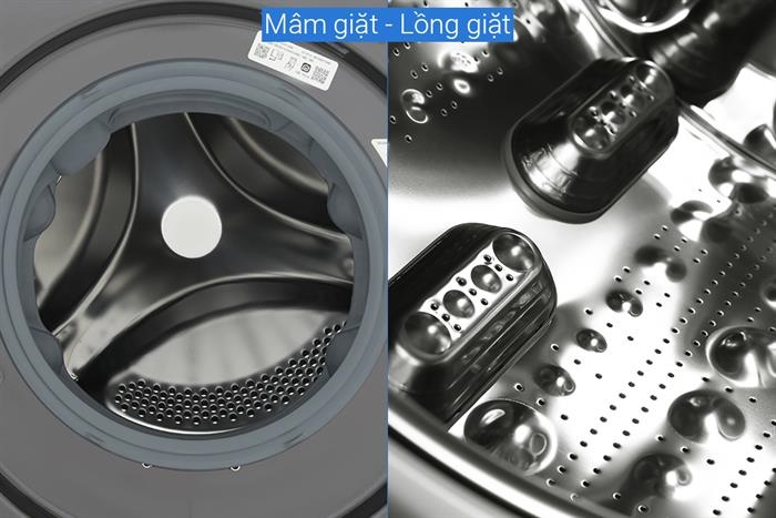 - Lồng giặt sấy làm từ thép không gỉ sáng bóng, bền bỉ, hạn chế mảng bám vào lồng giặt sấy.