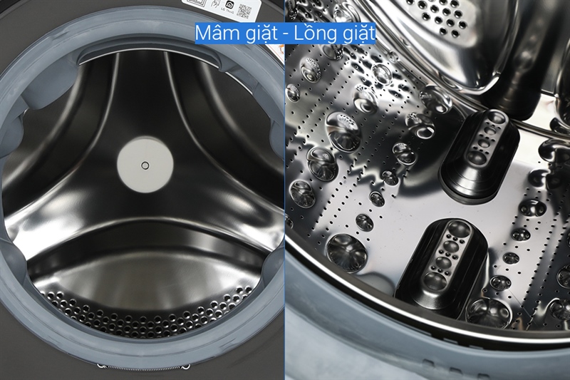 - Lồng giặt bằng chất liệu thép không gỉ giúp hạn chế vi khuẩn và nấm mốc phát triển, chống đóng cặn tốt, đem lại hiệu suất giặt giũ cao.