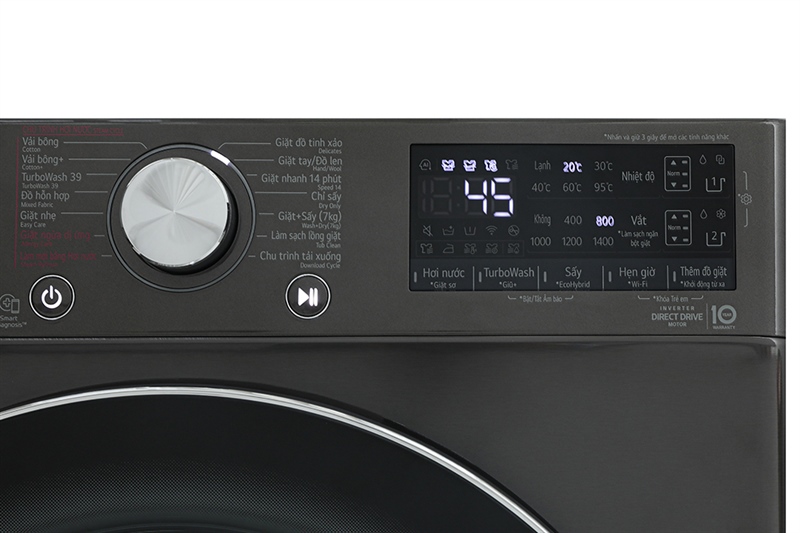 - Bảng điều khiển cảm ứng song ngữ Anh – Việt có nút xoay, màn hình LED hiển thị thông số rõ ràng giúp bạn dễ dàng thao tác và lựa chọn chương trình giặt theo nhu cầu.