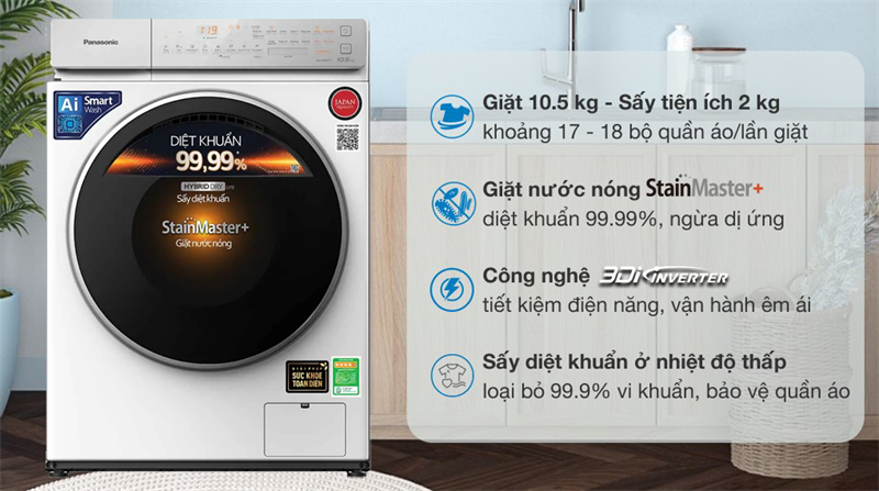Thông số kỹ thuật Máy giặt Panasonic Inverter 10.5 Kg NA-V105FC1WV 2022 - VIỆT NAM