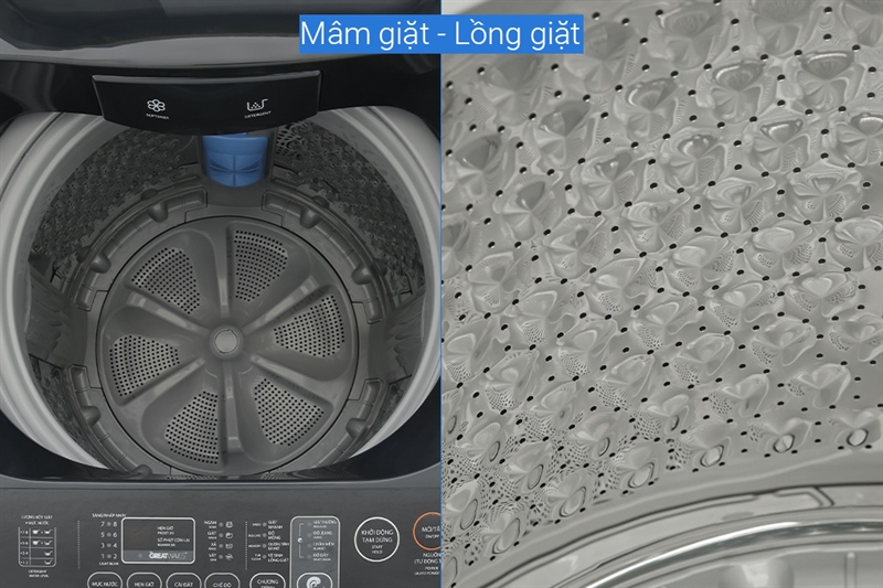 - Lồng giặt ngôi sao pha lê: các gờ nổi có hình ngôi sao vừa nâng cao hiệu quả giặt sạch vừa chống sờn vải, bảo vệ đồ giặt được tốt hơn.