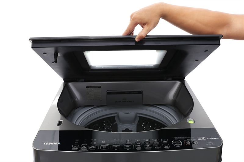 Bên trong lồng giặt được trang bị đèn LED chiếu sáng sẽ tự động bật sáng khi chức năng siêu bọt khí hoạt động. Đèn LED cũng bật sáng khi mở nắp kính, rất tiện lợi khi giặt đồ vào ban đêm, đặc biệt khi máy giặt được đặt ở các vị trí thiếu sáng.