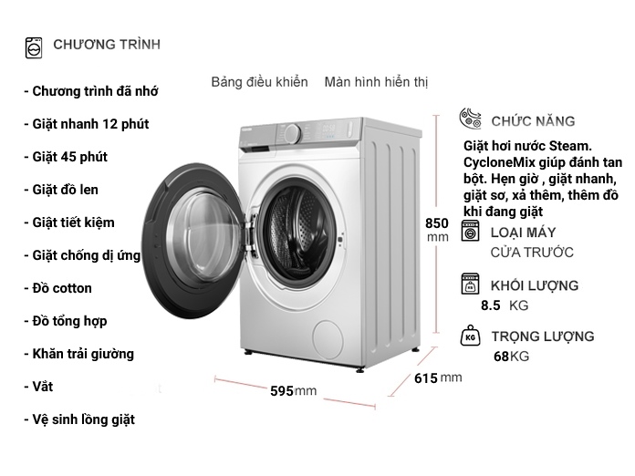 | Kích thước sản phẩm: | 595 x 615 x 850 mm |