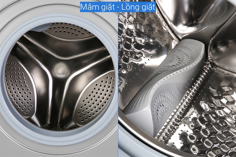 Lồng giặt được làm bằng thép không gỉ sáng bóng, cực kỳ chắc chắn. Đồng thời vật liệu thép không gỉ còn có khả năng kháng khuẩn, chống bám bẩn tốt nên sau mỗi lần sử dụng, người dùng chỉ cần dùng khăn mềm lau khô lồng giặt là được.