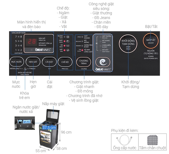 Giặt quần áo sạch hơn, nhanh hơn, dễ dàng hơn với công nghệ giặt Greatwaves kết hợp 3 luồng nước