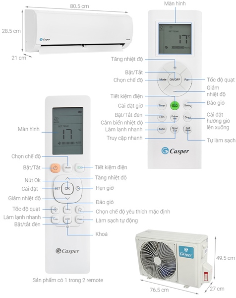 – Sử dụng chế độ Eco giúp máy lạnh Casper tăng 1°C trong 1 tiếng (tối đa 2°C), tiết kiệm điện năng mà vẫn đảm bảo khả năng làm lạnh.