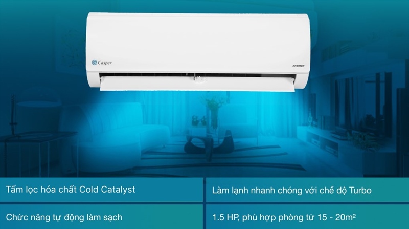Máy lạnh Casper Inverter sử dụng tấm lọc hóa chất Cold Catalyst có tác dụng giữ và phá hủy các cấu trúc formal-dehyde, các tạp chất hữu cơ bay hơi (VOC) có hại trong không khí nhờ đó mang đến một không gian trong lành, bảo vệ sức khỏe người dùng.