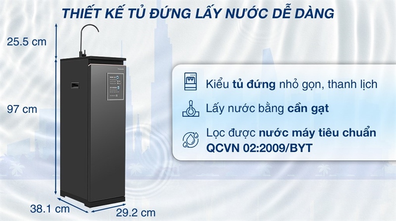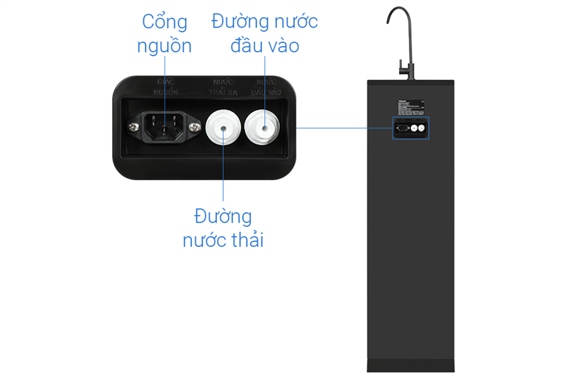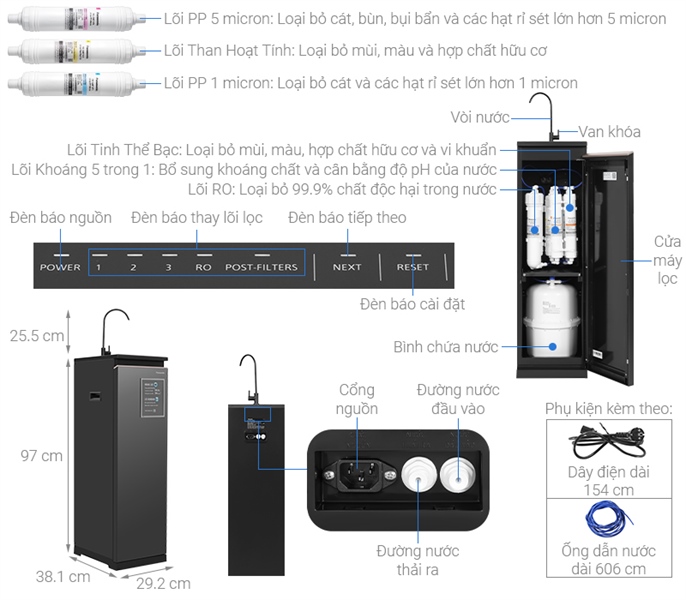 - Lõi RO (Sx Hàn Quốc): Loại bỏ 99.9% chất độc hại trong nước.