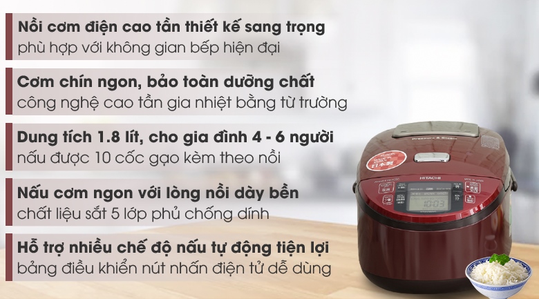 Nồi cơm điện cao tần Hitachi 1.8 lít RZ-KV180YS sản phẩm chất lượng cao thương hiệu uy tín, gia dụng cao cấp gia tăng chất lượng bữa ăn gia đình.