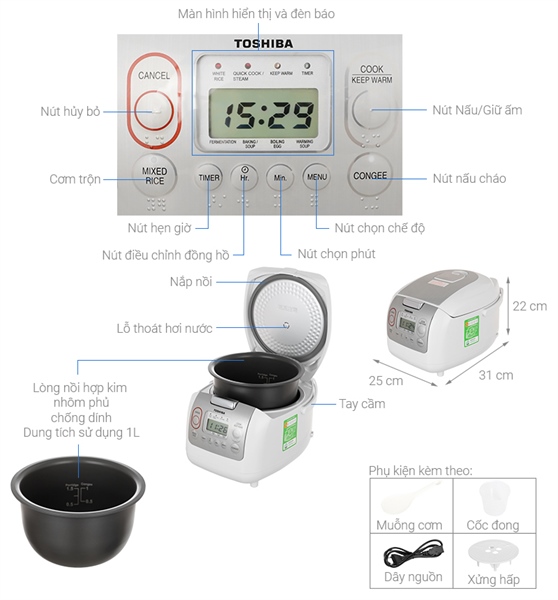 · Tiện ích: | Có xửng hấp Hẹn giờ 24 giờ Giữ ấm lên đến 30 giờ |