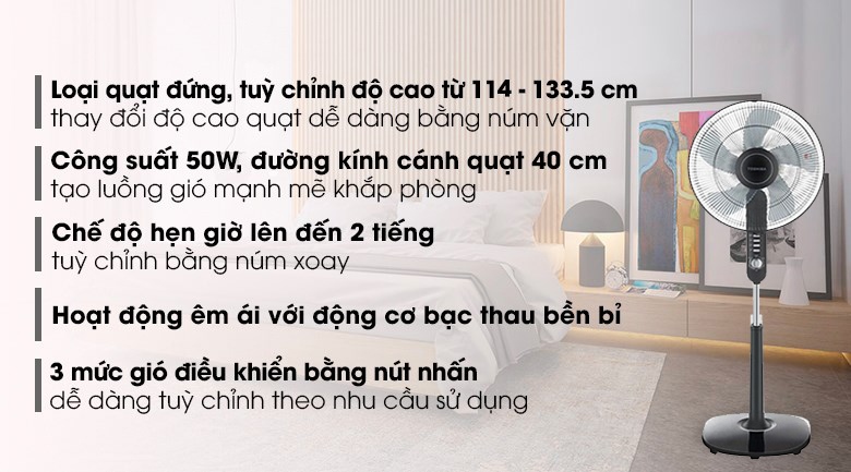 | Loại quạt: | Quạt đứng - 50W - 3 mức gió |
