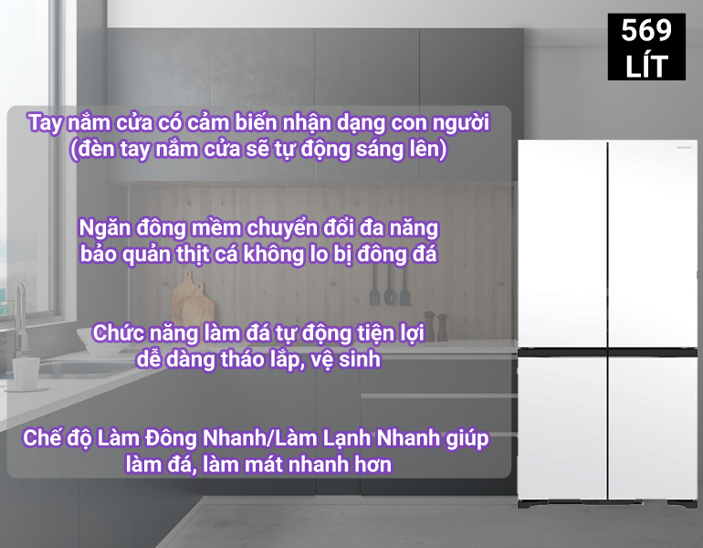 Tủ lạnh Hitachi Inverter 569 lít R-WB640PGV1 GMG (Màu xám) - THÁI LAN
