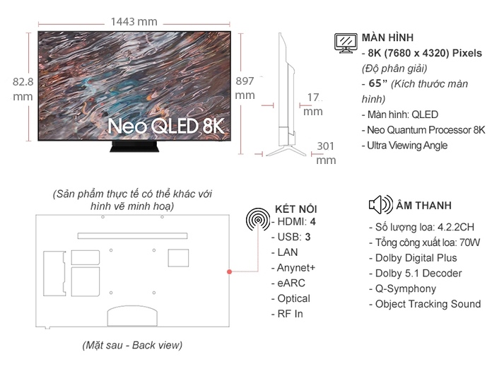 Thông số kỹ thuật Smart Tivi Neo QLED 8K 65 inch Samsung QA65QN800A