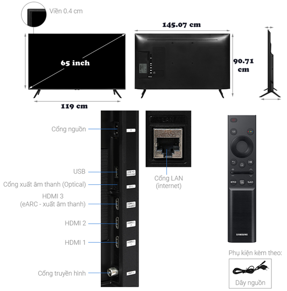 Thông số kỹ thuật Smart Tivi Samsung 4K 65 inch UA65AU7002 Năm ra mắt 2022 - Việt Nam