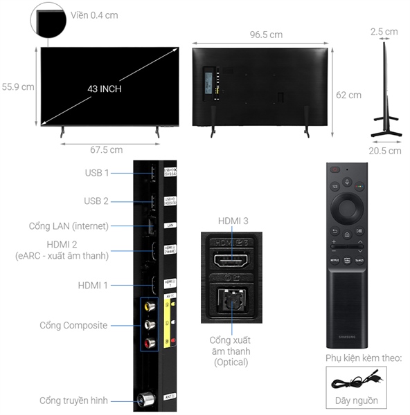 Thông số kỹ thuật Smart Tivi Samsung 4K Crystal UHD 43 inch UA43AU8100 2021