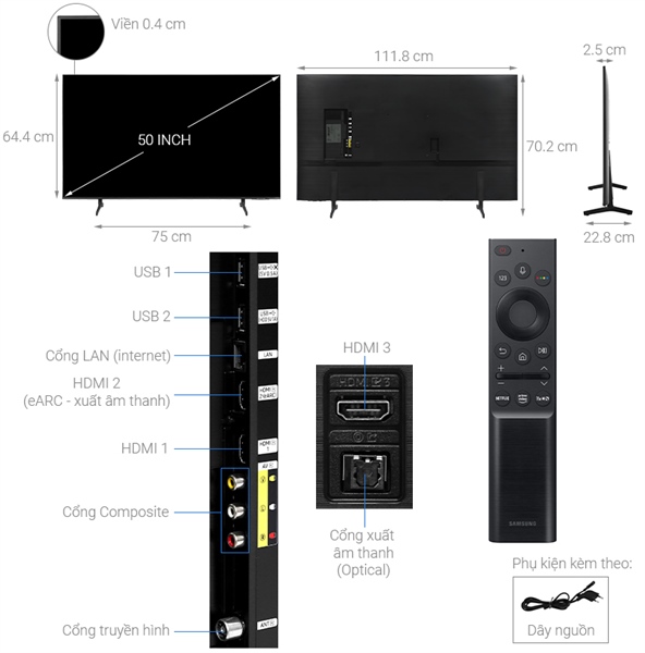 Thông số kỹ thuật Smart Tivi Samsung 4K Crystal UHD 50 inch UA50AU8100 2021 – VIỆT NAM
