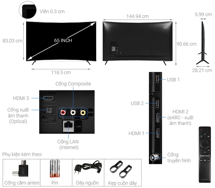Thông số kỹ thuật Smart Tivi Samsung 4K Màn Cong Crystal UHD 65 inch UA65TU8300 2020 - VNThông tin chung