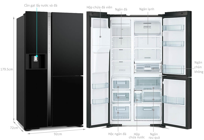 - Hitachi R-MX800GVGV0(GBK) 2021 - THÁI LAN thuộc dòng tủ lạnh lớn - Side by side có 3 cánh cửa, thiết kế thanh lịch từ bên trong đến bên ngoài, các chi tiết tinh tế, tông màu xám thời thượng, tạo điểm nhấn cho gian bếp thêm cao cấp, hiện đại.