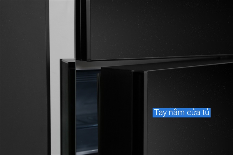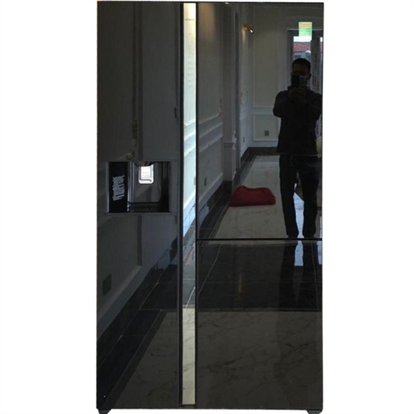 - Cửa tủ lạnh sử dụng mặt kính nguyên khối thiết kế phẳng tràn viền sáng đẹp, góp phần nâng cao tính thẩm mỹ cho thiết bị và không gian bố trí.