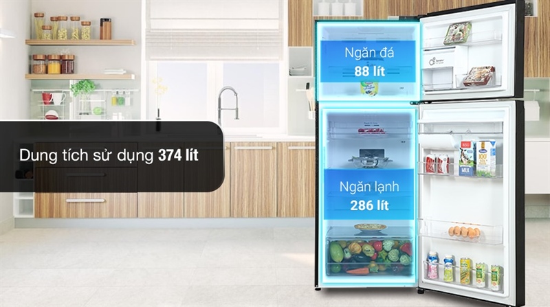 Dung tích sử dụng 374 lít, phù hợp với gia đình 3 - 4 người