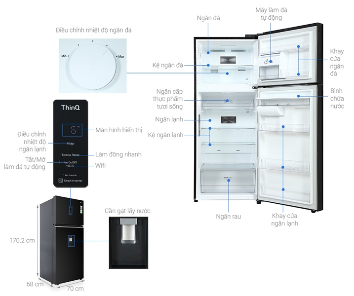 Thông số kỹ thuật Tủ lạnh LG Inverter 374 lít GN-D372BLA 2021 - INDONESIA