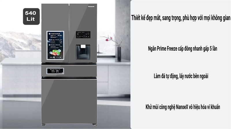 Tủ lạnh Panasonic 540 lít NR-YW590YHHV với thiết kế Multi Door hiện đại kết hợp với nhiều tính năng như cảm biến Econavi, công nghệ Inverter, khử mùi, kháng khuẩn Nanoe-X, làm đá tự động, bảng điều khiển, khay lấy nước bên ngoài,... Kết hợp với dung tích 540 lít nên đáp ứng được nhu cầu bảo quản thực phẩm của gia đình từ 4 - 5 thành viên.