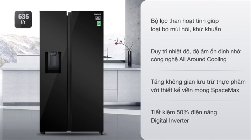 Tủ lạnh Samsung Inverter 635 lít RS64R53012C/SV 2020 là chiếc tủ lạnh side by side cao cấp đến từ hãng Samsung. Đường nét hài hòa tinh tế kết hợp với màu đen nổi bật và thiết kế kiểu tủ lạnh mặt gương sang trọng khiến không gian bếp nhà bạn thêm phần ấn tượng.