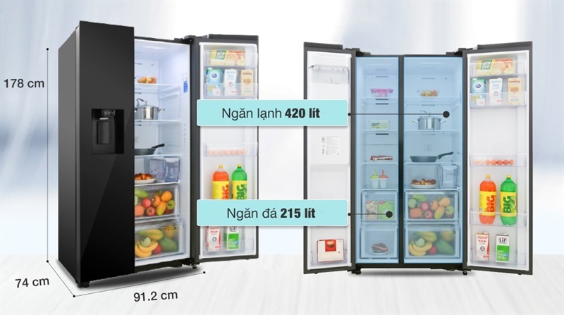 · Kích thước tủ lạnh: | Cao 178 cm - Rộng 91.2 cm - Sâu 74 cm - Nặng 118 kg |