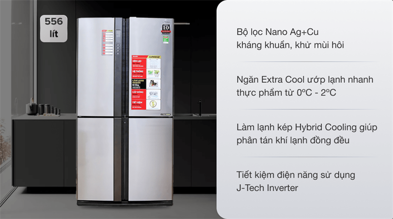 Dung tích 556 lít, chiếc tủ lạnh Sharp này sẽ là lựa chọn lý tưởng cho gia đình có trên 5 thành viên.