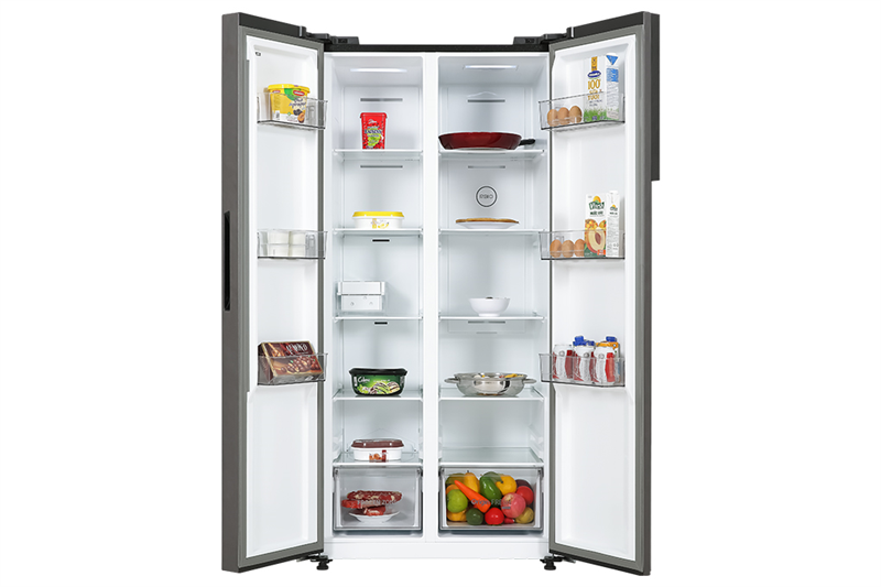 - Tủ lạnh Toshiba Inverter 460 lít GR-RS600WI-PMV(37)-SG được thiết kế theo kiểu Side by side với chất liệu cửa tủ bằng bằng thép không gỉ có độ bền cao, đồng thời phủ lớp sơn tĩnh điện màu xám satin bóng mờ tạo nên vẻ đẹp tinh tế cho sản phẩm, nhờ đó có thể phù hợp cho mọi vị trí lắp đặt bên trong gian bếp hiện đại nhà bạn.