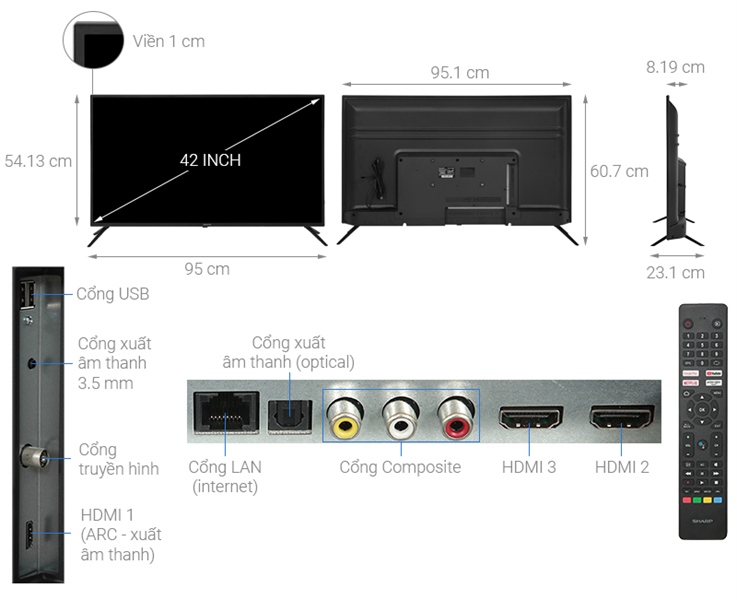 Thông số kỹ thuật Android Tivi Sharp 42 inch 2T-C42EG2X