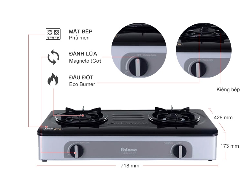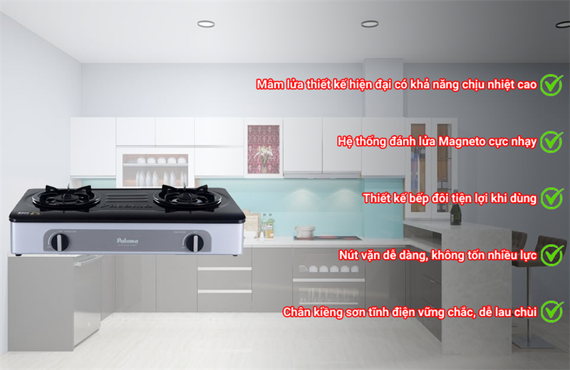 Bếp gas Paloma PA-V72ES được thiết kế mâm lửa có khả năng chịu nhiệt cao, thiết kế chia lửa hiệu quả, tối ưu lượng gas sử dụng, góp phần giảm đi hao phí gas đáng kể.