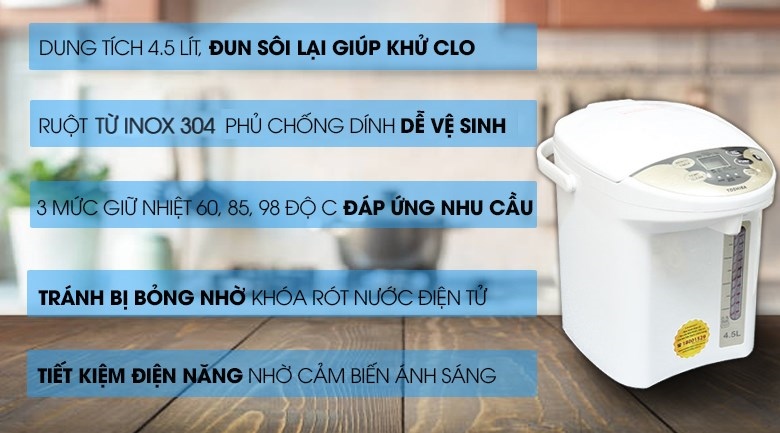 Bình thủy điện Toshiba PLK-45SF(WT)VN 4.5 lít - THÁI LAN