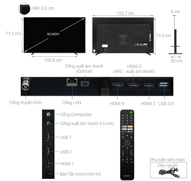 Thông số kỹ thuật Google Tivi OLED Sony 4K 55 inch XR-55A80K