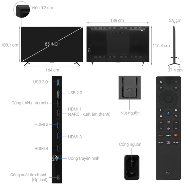 Google Tivi QD-Mini LED TCL AI 4K 85 inch 85C6K 2025 - VIỆT NAM