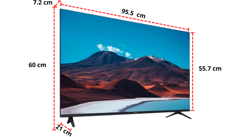 • Kích thước không chân, treo tường: Ngang 95.5 cm - Cao 55.7 cm - Dày 7.2 cm