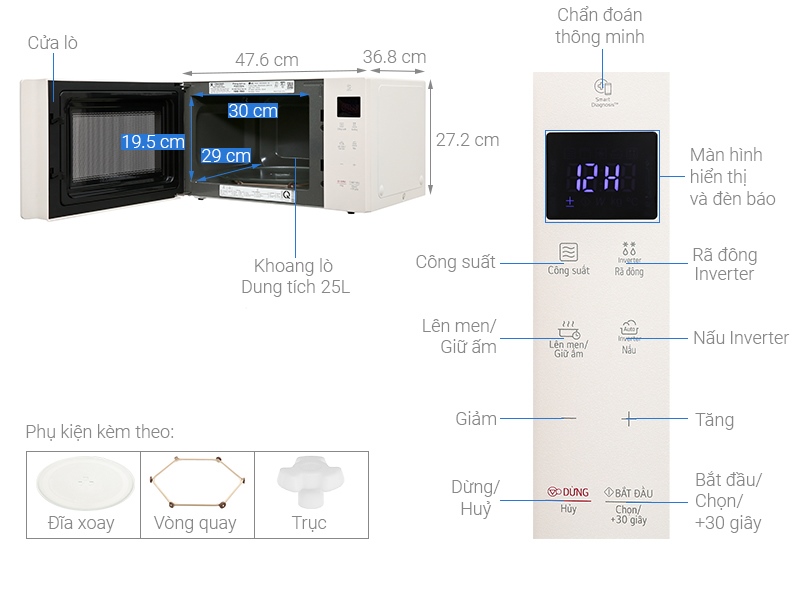 - Công nghệ Smart Inverter kiểm soát nhiệt độ chính xác, hỗ trợ rã đông, làm nóng đều đồng thời tiết kiệm điện.