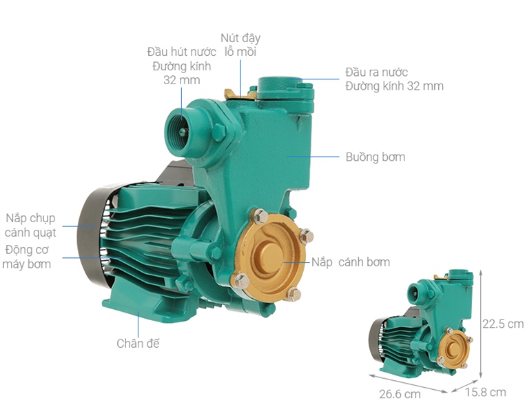 · Tiện ích | Tự động ngắt điện khi nhiệt độ bơm quá cao, tăng độ an toàn chống cháy nổ Rơ-le bạc bền hơn Hút và đẩy nước mạnh mẽ. Trục bằng Inox |