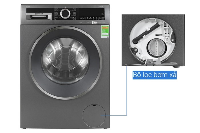 - Máy giặt Bosch 10kg WGG254A0VN đạt nhãn hiệu năng lượng 5 sao với hiệu suất sử dụng điện 26.36 Wh/kg.