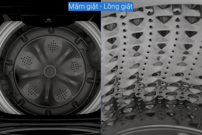 - Lồng giặt bằng thép không gỉ, có tính thẩm mỹ cao, hạn chế mảng bám, vi khuẩn tích tụ.