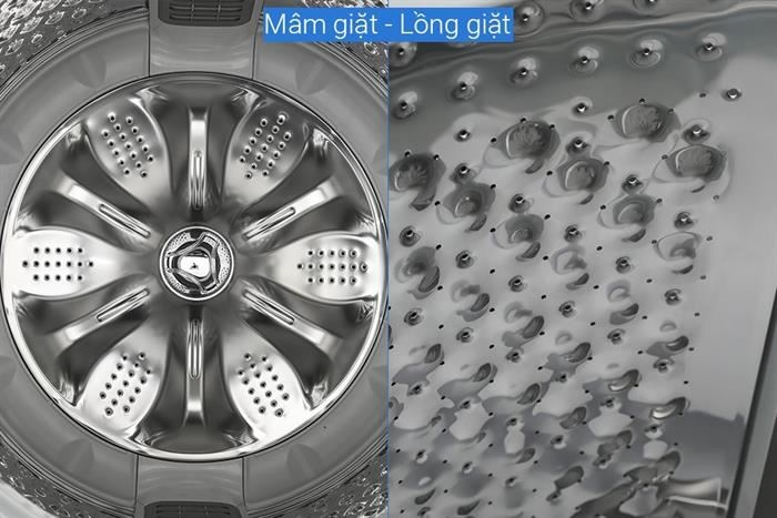 - Lồng giặt bằng thép không gỉ bền bỉ, chống hao mòn đặc biệt là trong môi trường thường xuyên tiếp xúc với bột giặt.
