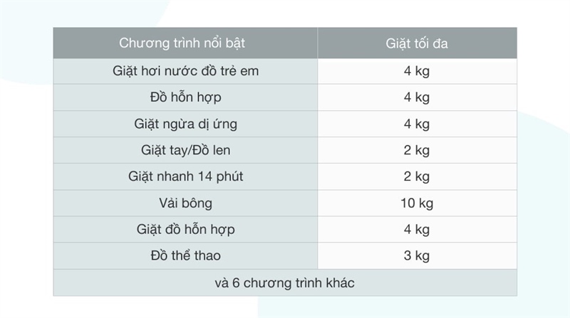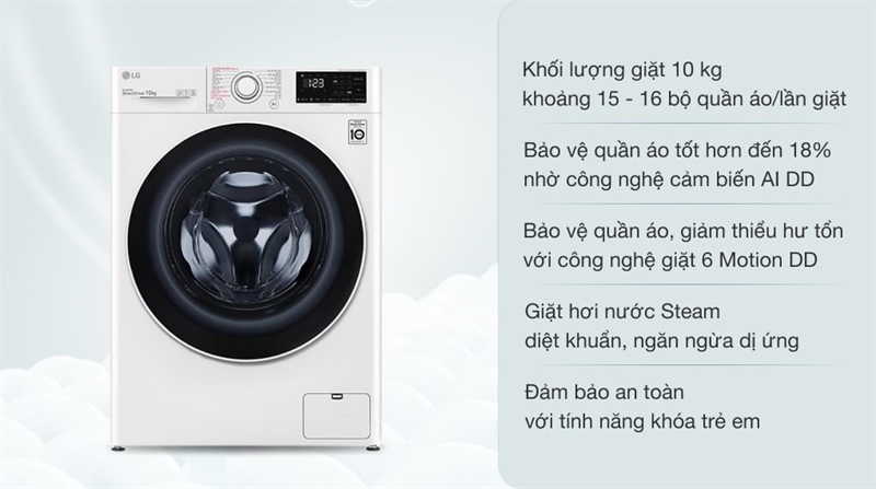 Khối lượng giặt 10 kg, phù hợp cho gia đình từ 5 - 7 thành viên